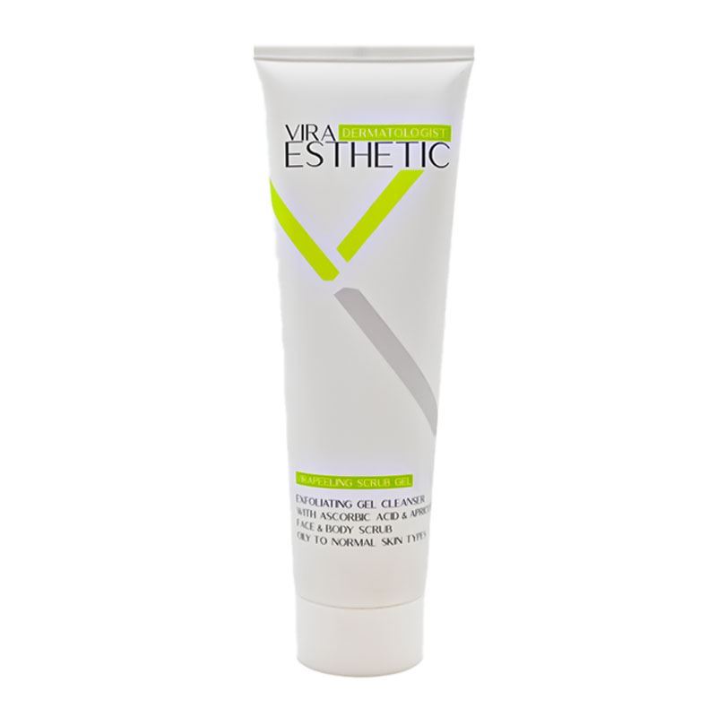 ژل اسکراب پوست صورت و بدن ویرا استتیک حاوی روغن هسته ی زرد آلو ، کلاژن هیدرولیز شده ، اوره ، دایمتیکون ، آلانتوئین و اسید سیتریک است . این محصول هماننئ یک پاک کننده ی بسیار قوی عمل می کند و پوست را پاکسازی و لایه برداری می کند همچنین چربی ، آلودگی ، سلول های مرده و میکرو ارگانیسم های سطح پوست را حذف می کند و سبب ایجاد سلول های جدید بر روی پوست و شفافیت و روشن شدن پوست صورت می شود ، پس برای آن دسته از افرادی که پوست که پوست کدری دارند ، بسیار مناسب می باشد .